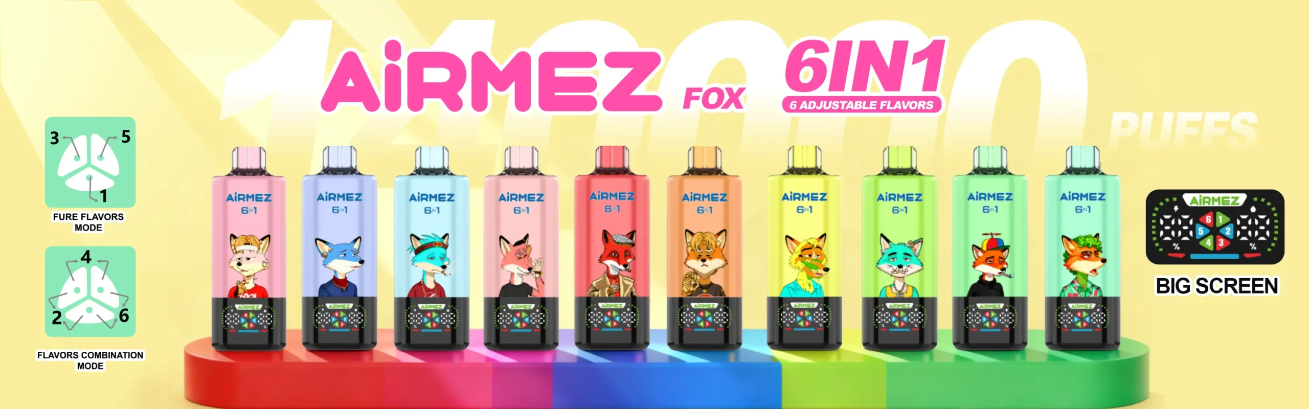 今すぐ購入して、Airmez FOX 140000 Puffs 6 IN 1のユニークな体験をお楽しみください!