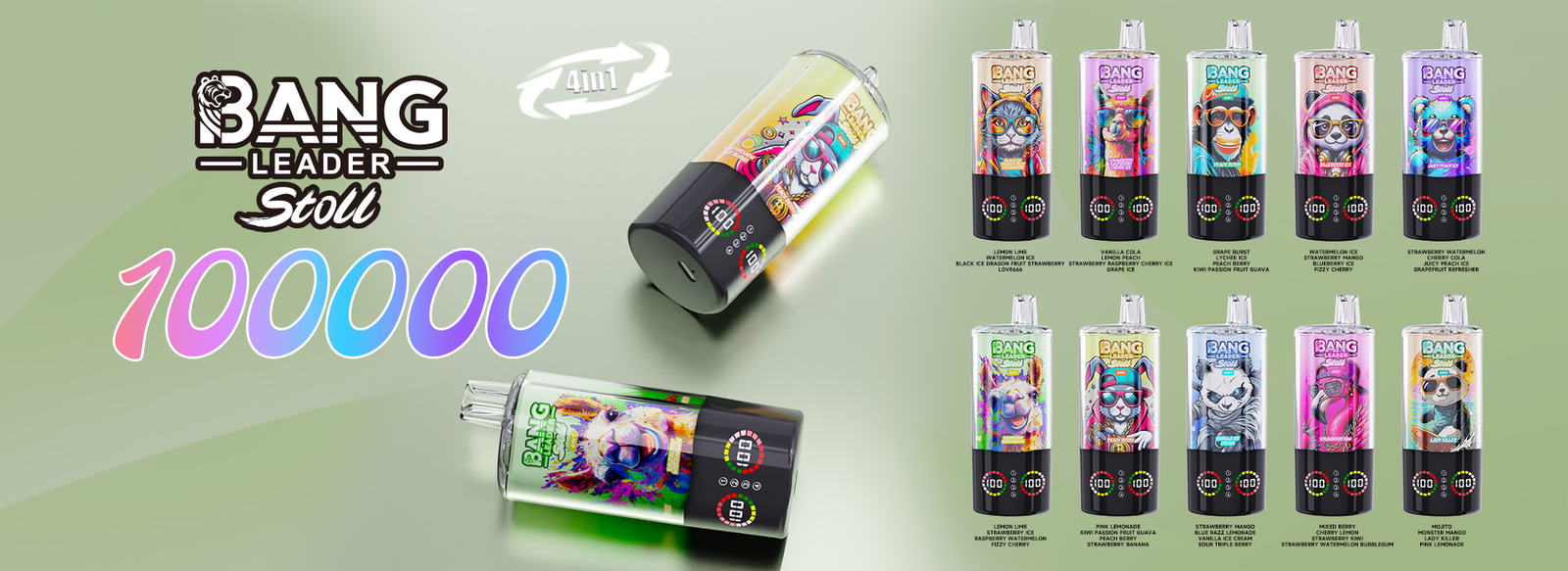 Bang Leader Stoll 100000 Puffs 4 in 1 Flavors | 最大100,000パフ搭載ディスポーザブルベイプ